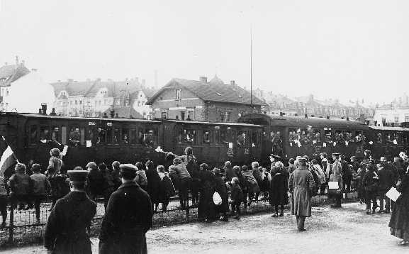 Am 24. August 1914 wird das Landsturmbataillon nach Belgien abtransportiert: "Von jungen Mädchen wurden den Einberufenen, die meist Familienväter aus hiesiger Stadt waren, Blumen dargereicht". Das obige Bild dürfte allerdings etwas später, wohl im Herbst 1914 (wahrscheinlich 21.10.) aufgenommen worden sein, als 3.000 Mann der "21er" nach Nordfrankreich abgingen: "Am Bahnhof hatte sich eine ungeheure Menschenmenge versammelt. Den ausziehenden Kriegern wurden Blumen und Liebesgaben überreicht. Unter dem Gesang patriotischer Lieder verließen die Militärzüge den Bahnhof" Repro: A. Mayer. Erlebnis und Wirkung Es war ein unerwartetes Erwachen, als die Oberste Heeresleitung Ende September 1918 einen sofortigen Waffenstillstand verlangte. Nach den ständigen Durchhalteparolen und den Siegesmeldungen bis zuletzt wirkte dies wie ein Schock. Die deutschen Truppen standen bis Kriegsende tief in Feindesland, auch bei den Sozialdemokraten glaubte man bis zuletzt, daß ein Waffenstillstand auf Vorkriegsstatus ohne weiteres zu haben sei. Eine Niederlage des Reiches war einfach nicht vorstellbar gewesen . Die Realität und ganz besonders dann der Ausgang des Krieges verstörte die Öffentlichkeit, die vielfach Anhänger einer weltgeschichtlichen "Missionsaufgabe" des deutschen "Wesens" waren ("Am deutschen Wesen soll die Welt genesen..."). Der Wissenschaftler Helmut Fries beschrieb die Folgen so: "Der Zeitgenosse brauchte nun eine Erklärung für das Scheitern der so sicher erwarteten Übernahme der geistigen Weltherrschaft durch die ‚sendungsvolle‘ (Thomas Mann) deutsche ‚Wesensart‘. Die Schuld dafür wurde immer mehr bei einem inneren Feind gesucht, der die großartige geistig-moralische ‚Erhebung‘ des deutschen Volkes vom August 1914 untergraben und zerstört haben mußte. Im Verlaufe des Krieges verbreitete sich im Deutschen Reiche eine Denkhaltung, deren verhängnisvolle Konsequenzen erst Jahre später wirksam werden sollten: Rassismus und Antisemitismus. Insbesondere das Judentum wurde nun verantwortlich gemacht für eine schnelle Rückkehr von Dekadenz, Egoismus, Profitmoral etc. in das geistig-kulturelle ‚Leben‘ der Nation... Mit dem Kriegsende 1918 kam dann zu der Auffassung eines geistigen Verrats noch die Behauptung des Dolchstoßes, also die Schuldzuweisung für den militärischen Ausgang des Krieges an die vermeintlich von Juden und Bolschewisten beherrschte Sozialdemokratie. Damit war eine wichtige Basis gelegt für den späteren Erfolg völkisch nationaler Ideologie. Je mehr die Erinnerung an die Realität des Krieges von 1914-1918 verblaßte, um so heftiger konnte nun Rache gefordert werden für den ‚doppelten Verrat‘ am deutschen Volke. Eine neue Generation, gehärtet in den ‚Stahlgewittern‘ des Ersten Weltkrieges, galt nun als auserwählt zur Revision der Weltgeschichte." Die These Die Täuschung des deutschen Volkes durch die "Männer von 1914" und die folgende Enttäuschung hatten während des Krieges, in der Weimarer Republik und in der Zeit des Nationalsozialismus ungeahnte Folgen. Zusammen mit der schmerzlichen Erinnerung an die gebrachten Opfer und der Empörung über die Friedensbedingungen der Alliierten ergab sich ein gefährliches Gemisch in den Köpfen der Menschen, aus dem der Nationalsozialismus keimte und das den Holocaust ermöglichte. Der Nationalsozialismus und der Zweite Weltkrieg sind die radikalen Konsequenzen von Hitlers Interpretation des Ersten Weltkrieges. Viele, wenn nicht die meisten Deutschen konnten Hitlers Interpretation zumindest nachvollziehen. Die jüngere Generation hatten ebenfalls Eindrücke, die vom geschickten Demagogen zu besetzen waren: Sie hatte die Schmach verinnerlicht, die Schande der Väter galt es zu revidieren. Der "Urkatastrophe des 20. Jahrhunderts" folgte eine noch größere Katastrophe. Alexander Mayer Alexander Mayer: Fürth 1911-1914. Krieg der Illusionen – die lokal Sicht. Städtebilder Verlag Fürth. ISBN 3-927347-44-2. Fürth 2000. |
