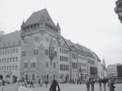 einmal absieht). Das Nassauerhaus gilt als einziges in Nürnberg erhaltenes Beispiel eines mittelalterlichen Turmhauses. Von 1973 bis 1978 wurde das Nassauerhaus von Karstadt quasi umbaut. Die Fassadengestaltung löste zuvor leidenschaftliche Diskussionen aus. Zur Vermeidung irreversibler Bausünden einigte man sich auf die konventionelle Sandsteinfassade. In Fürth ist man traditionell weniger vorsichtig. Foto: A. Mayer. Ein Gebäude in exponierter Lage wird im Guten wie im Schlechten zum Aushängeschild, zur Visitenkarte; es zeigt, wie man sich selbst einschätzt und wie man eingeschätzt werden will. Dies gilt zuvorderst für Gebäude neben den wichtigsten Baudenkmälern (z.B. Rathaus, Stadttheater), aber auch für Bauten an den Eingängen der Stadt, vor allem zur Innenstadt. Ich weiß nicht, ob dies bei entsprechenden Entscheidungen in Fürth auch immer ausreichend bedacht und bewertet wird. Alexander Mayer |